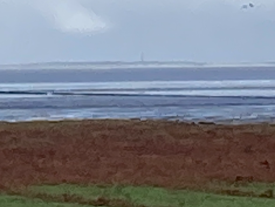 Ter hoogte van Zwarte Haan hebben we even gepauzeerd, een broodje gegeten en Ameland op de foto gezet. Daar konden we de contouren net van zien. De wandeling ging verder langs de kust, tussen de schapen door, een beetje schuin lopend op de dijk. Zelfs de zon liet zich soms even zien tussen de wolken door. Dan genieten we kilometers van de prachtige dijk en een buitendijks kweldergebied, wat als natuurgebied in gebruik is.