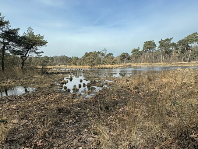 Verderop kom je bij het Rielse Laag langs enkele waterpartijen, zoals de Halve Maan, gelegen tussen bossen en heide. Een witte reiger zoekt er zijn kostje bij elkaar. Verderop vliegt een grote roofvogel; omdat die niet boven de boomgrens uitkomt, kunnen we niet zien welke soort het is. Op 8 km vanaf startpunt Oosterwijksestraat en ook aan het eind van de etappe vind je horeca. Bij het eindpunt kan je met de Belgische bus naar station Tilburg. Een prachtige wandeling!