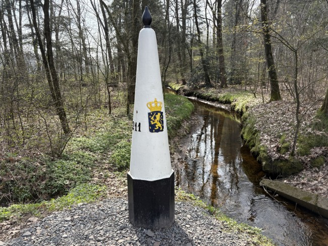 Grenspaal Nederland-België naast beek Nieuwe Ley © Ernst Koningsveld